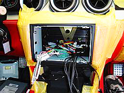 オーディオと下のCDホルダーのスペースに加工を施して、2DINの取り付け金具を設置します。